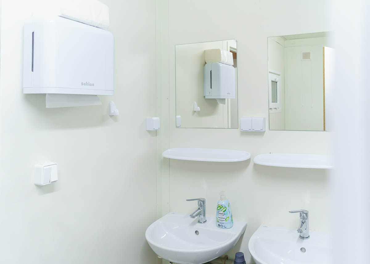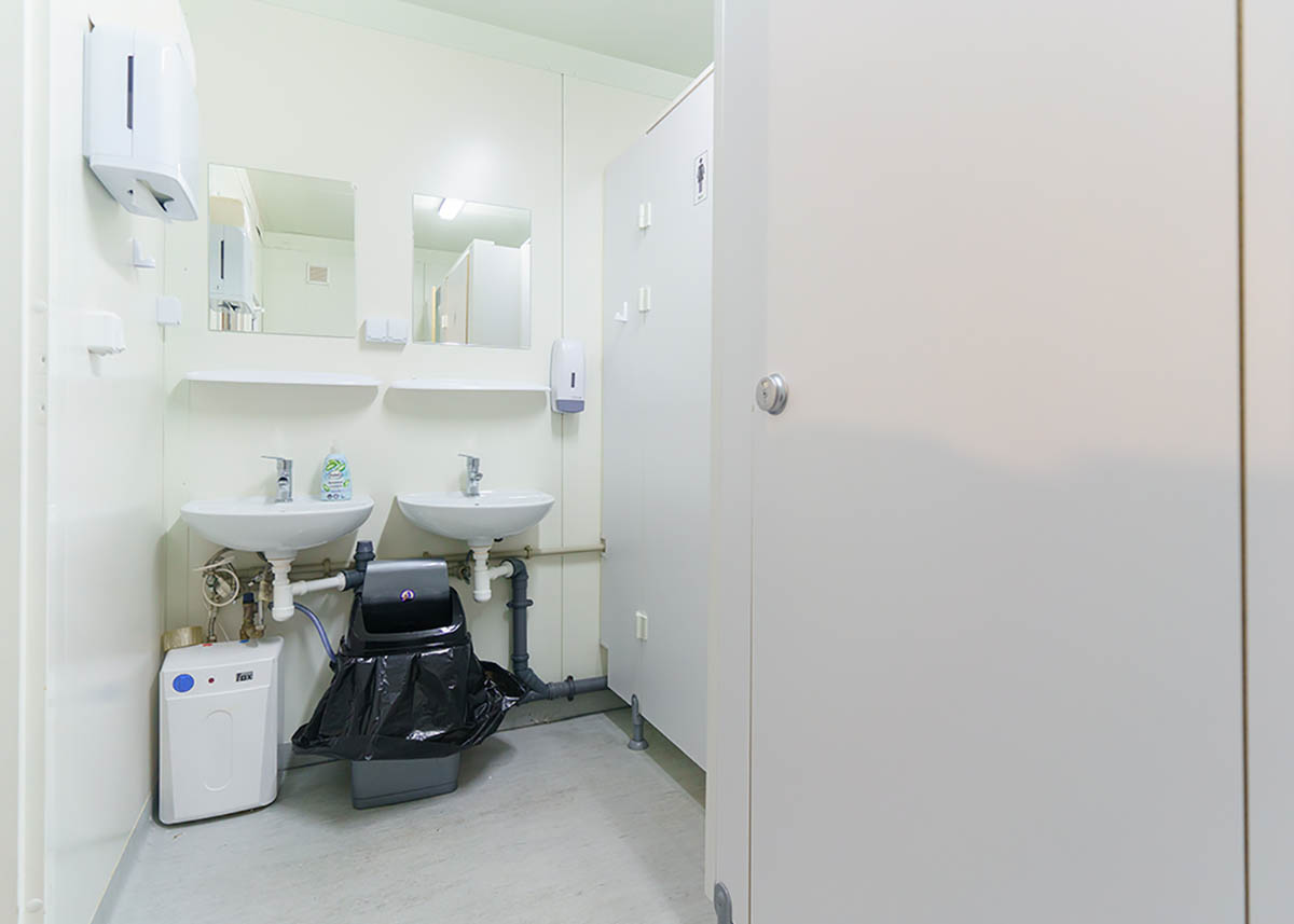 Muški dio posjeduje 2 toaleta i 2 pisoara, a ženski dio 3 toaleta. U oba dijela nalaze se po 2 umivaonika, po 2 ogledala, dispenzeri za sapun, držači za papir, električne grijalice, bojler za toplu vodu, ventilacija i rasvjeta.